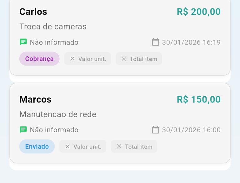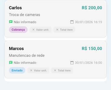 Crie orçamentos em poucos toques, compartilhe pelo WhatsApp e organize seus serviços.